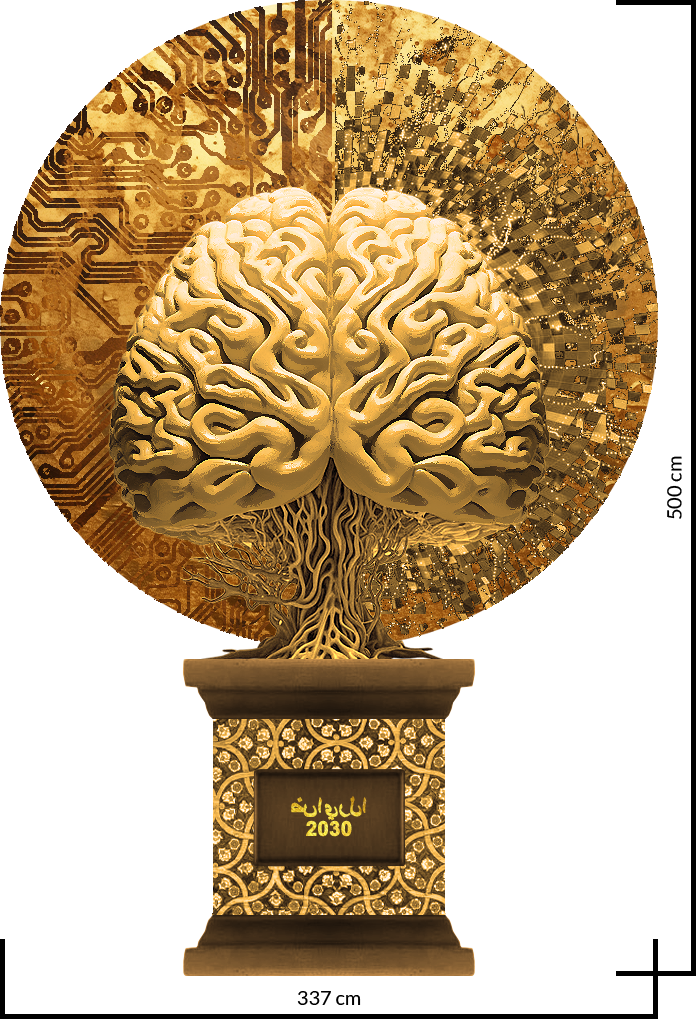 Enfin, pour donner une dimension exceptionnelle à cette collection et à cet évènement planétaire, le projet "Exposition universelle Riyad 2030" intégrera la réalisation d'un support d'exposition, haut de 5 mètres. Support produit en 2 exemplaires. Une célébration sera activable grâce à une clé d'activation en cours d'étude. Exigences et prix à estimer.